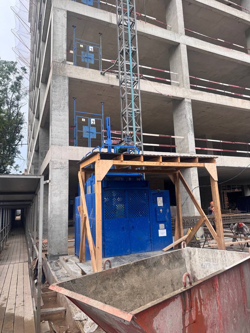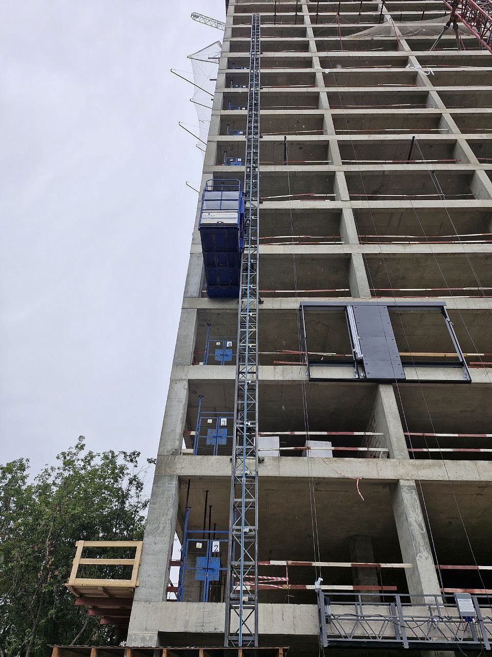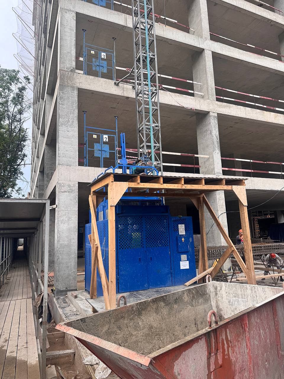 Наша компания установила на данном объекте лифт VECTOR SC200. Он предназначен для транспортировки строительных материалов и сотрудников на рабочие места. Лифт способен поднимать грузы до 2000 кг на высоту до 100 метров.